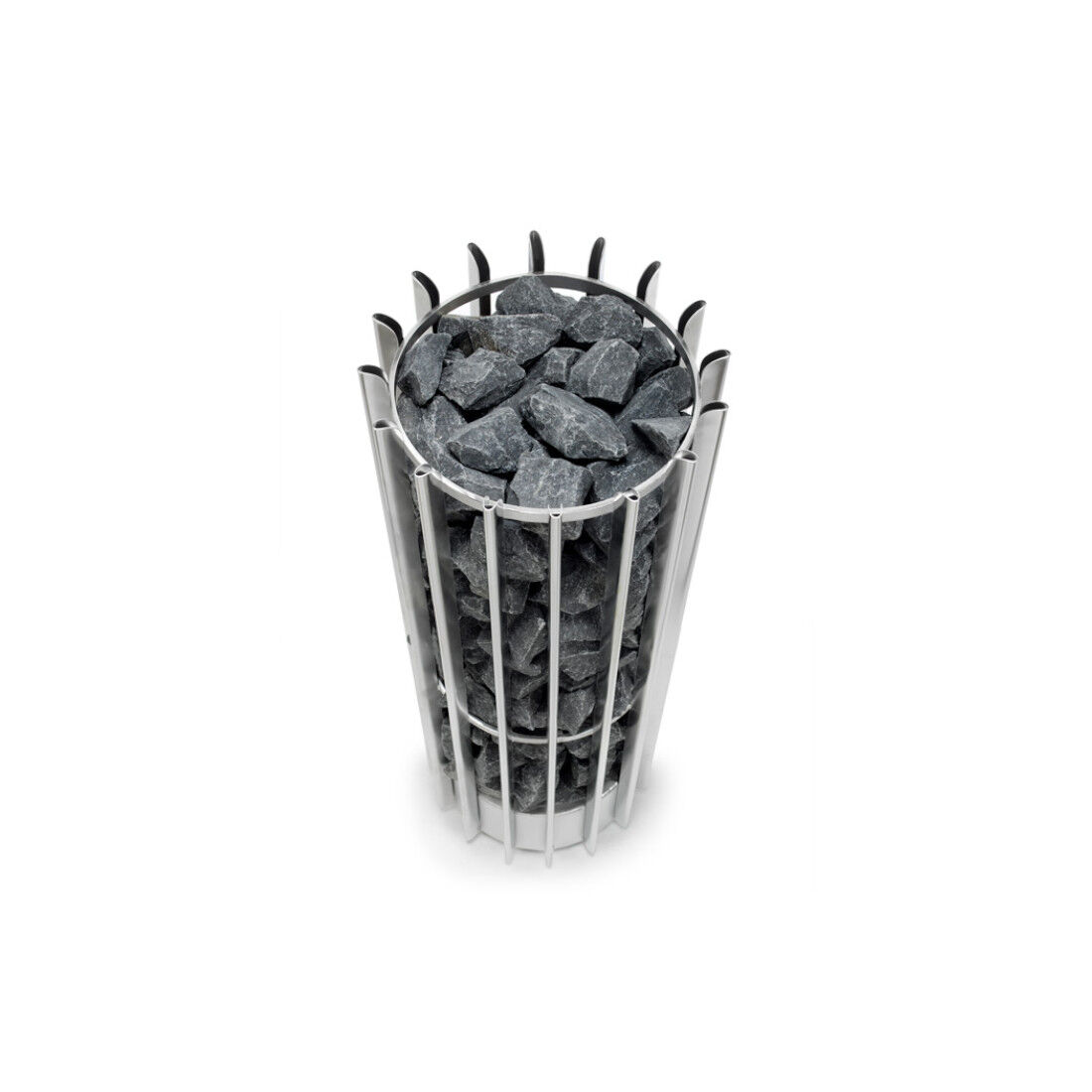 Posebnost peči je velika kapaciteta – sprejme do 100 kg kamnov za savno, kar omogoča dolgotrajno akumulacijo toplote ter mehko, prijetno paro. Odprta, vertikalna zasnova omogoča intenzivne, a hkrati nežne polive, ki ustvarijo vrhunsko savnsko izkušnjo.