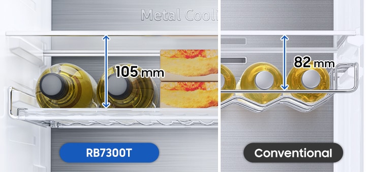 Uporabite večnamensko polico za vino in tako bolje izkoristite prostor v svojem hladilniku. Zaradi širše zasnove lahko shrani tudi širše steklenice za vino, kot je šampanjec. Poleg tega pa bolj ploščata oblika omogoča shranjevanje raznovrstnih živil, kot so škatle za pico in jajca.